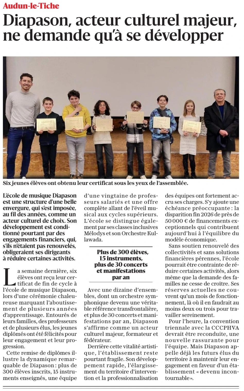 Presse Article de presse Tout 2024 2023 2022 2021 Diplômes et perspectives Décembre 2025 Concert de la Saint Nicolas Novembre 2025 Bibliotheques en scène 2025 Aumetz Juin 2025 Concert de classe Aumetz Juin 2025 Marché d’été NEST Juin 2025 Portes ouvertes Mai 2025 Annoce portes ouvertes Mai 2025 Le Bois de la Grive Mars 2025 Concert du Nouvel An Janvier 2025 Concert Noël Kullawada Decembre 2024 Concert 100 ans Diana Decembre 2024 Assemblée générale 2024 Decembre 2024 Annonce cloture Diana Novembre 2024 Soutien Fondation Crédit Mutuel Octobre 2024 Remise chèque Fondation Crédit Mutuel Octobre 2024 Scolaires Diana Juillet 2024 Conte symphonique Juin 2024 Bibliothèques en scène Juin 2024 Ensemble musique de chambre Mai 2024 Ensemble musique de chambre Mai 2024 Concert jardin Mai 2024 Préfiguration centenaire Avril 2024 Concert de printemps chorale Avril 2024 Soirée Blindtest Mars 2024 Pôle musicale Aumetz Mars 2024 Préfiguration centenaire Diana Mars 2024 Assemblée générale Décembre 2023 Concert 10 ans orchestre Décembre 2023 10 ans Orchestre Décembre 2023 10 ans OSPHVA Novembre 2023 100 ans DIANA Octobre 2023 Lancement projet Diana 100 ans Septembre 2023 Portes ouvertes Septembre 2032 Rentrée 2023 Août 2023 Concert pédagogique Juillet 2023 Hongrie et concert pédagogique Juin 2023 Bibliothèques en scène Juin 2023 Concert chorale Juin 2023 Bibliothèque en scène Juin 2023 Concert EPHAD Juin 2023 Centenaire Avril 2023 Assemblée générale Février 2023 MéloDys Décembe 2022 Chorale des petits Décembre 2022 Concert de Noël Octobre 2022 Aimation musicale Juin 2022 Diapason Mai 2022 Lancement chorale ados/adultes Décembre 2021 AG lancement Diapason Décembre 2021 Radio On parle de la musique et de ses bienfaits à la radio, sur France Bleu https://ecolediapason.fr/wp-content/uploads/2023/10/Diapason-FBL.m4a